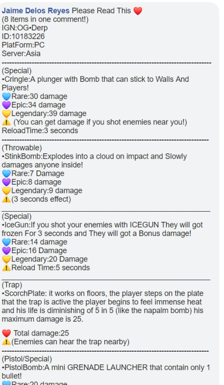 “Name:Grapple Gun Function: use the Grapple Gun to get to higher places such as Trees,Houses,Builds or Mountains Playing method Example: A player is in a build battle and he wants to get to build level or get the high ground he would use the Grappling Gun to get closer or higher than the player”