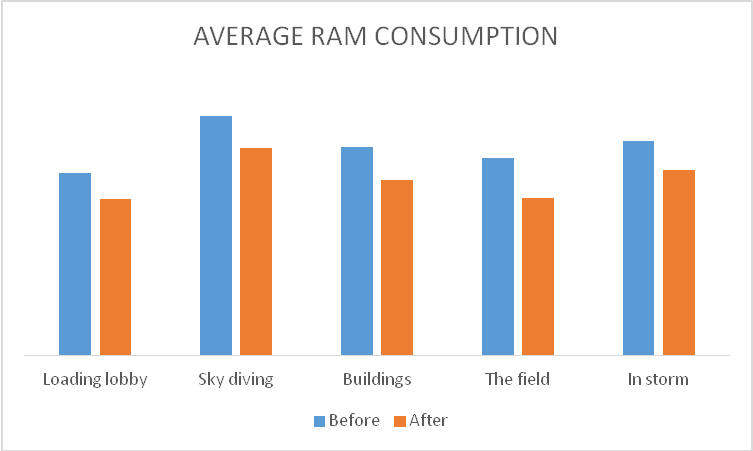 During Season 7, we focused on the optimization of RAM consumption. And we conducted thorough tests in different scenarios. Besides, we also improved the sky diving process, during which crushes take place most frequently. After that we started optimizing some other scenarios like outdoor environment and construction complex.In fact, we conducted a before-after test on Samsung J3 Luna Pro, and came out with the following results, which we are happy to share with you guys.